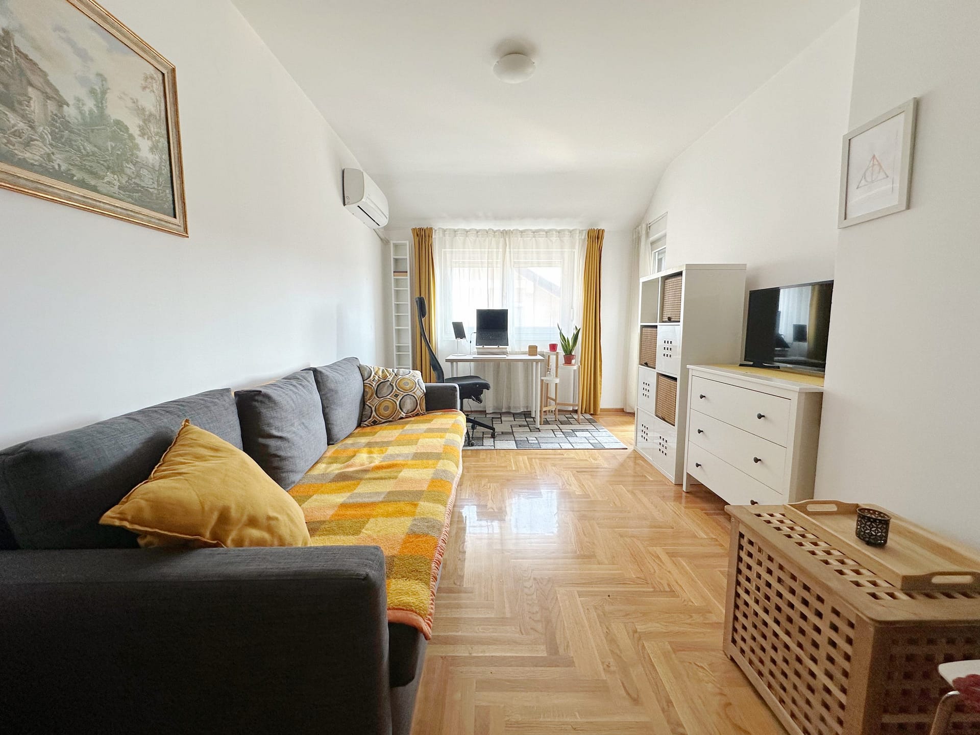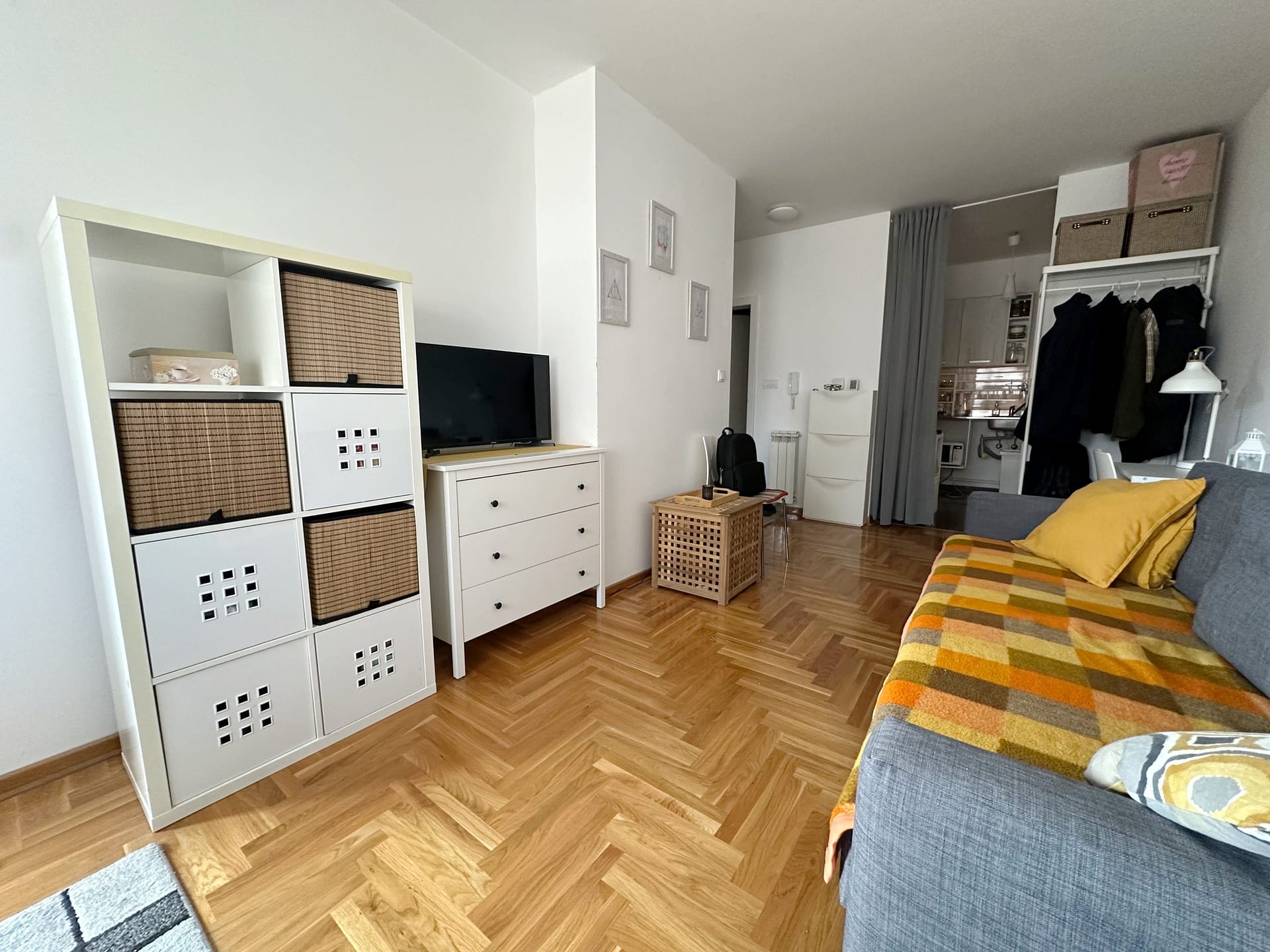 Stan se prodaje namešten, što znači da možete odmah da pređete u njega bez potrebe da brinete o kupovini novih komada nameštaja.